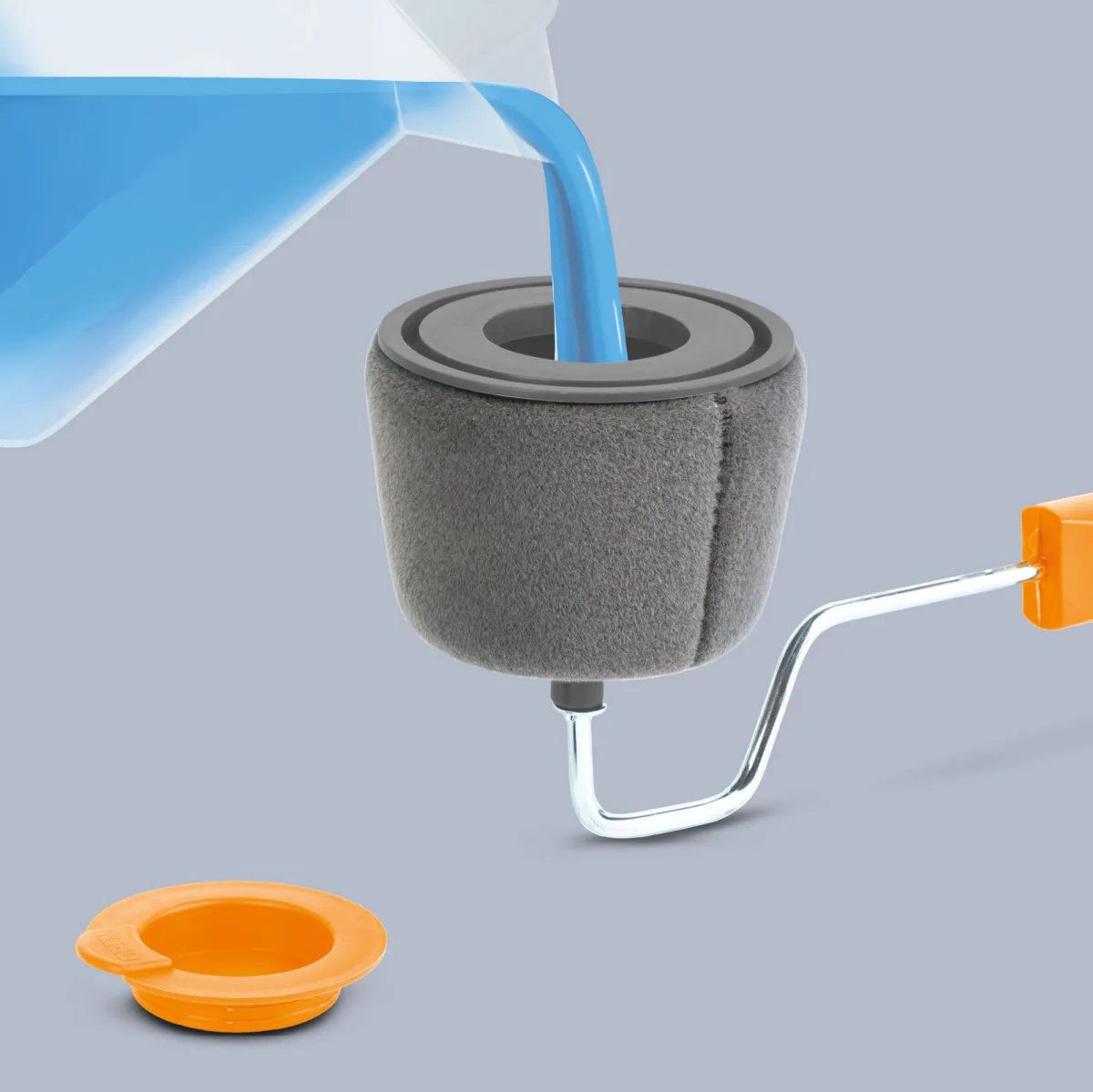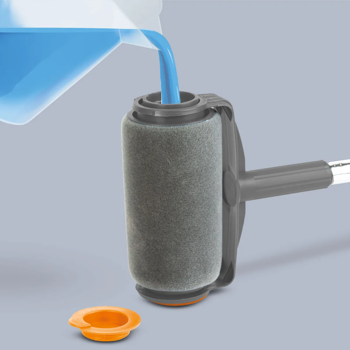 Preden začnete, napolnite valjček s pravo količino barve, namestite pokrovček in začnite barvati. Gobasti valjček enakomerno odstrani črnilo iz rezervoarja za doseganje rezultatov barvanja brez madežev in lis.